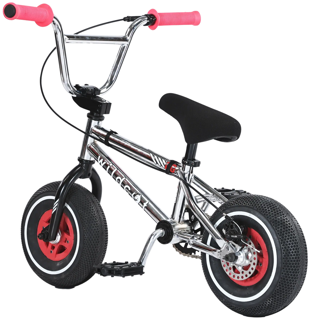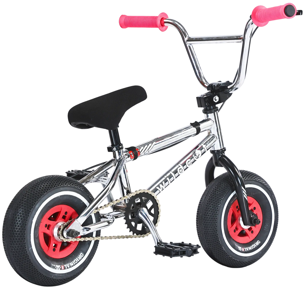 Das Wildcat OG3A Mini-BMX-Rad wurde für Personen entwickelt, die das aufregende BMX-Fahren in einer kompakteren Form erleben möchten. Der robuste Hi-Ten-Stahlrahmen und der strapazierfähige 10-Zoll-Raddurchmesser garantieren Langlebigkeit und Leistung. Die versiegelte Kassettennabe sorgt für ein reibungsloses Fahrverhalten und der Vorbau mit Top Load bietet hervorragende Kontrolle und Reaktionsfähigkeit. Dank des Scheibenbremssystems können sich die Fahrer/innen bei unterschiedlichen Bedingungen auf eine zuverlässige Bremsleistung verlassen.